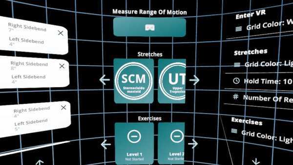 “锻炼”还可以引导您的视线中心,然后对运动的准确性进行评分。使用此模式可以控制并微调颈椎的运动。